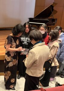 終演後、日系ブラジル人の子どもたちに囲まれながらプログラムノートにサインをする清水由香さんの姿を見て、ほっこりとした気持ちになりました。演奏を気に入ってくださったようで、「CDはありますか?」といった会話も弾んでいました。ブラジルと日本の文化交流が目の前で行われている瞬間に立ち会い、さらにプログラムノートを書くという形でイベントに参加できたことを嬉しく思いながら、幸せな気持ちで会場をあとにしました(その頃には雪も止んでいました)。
